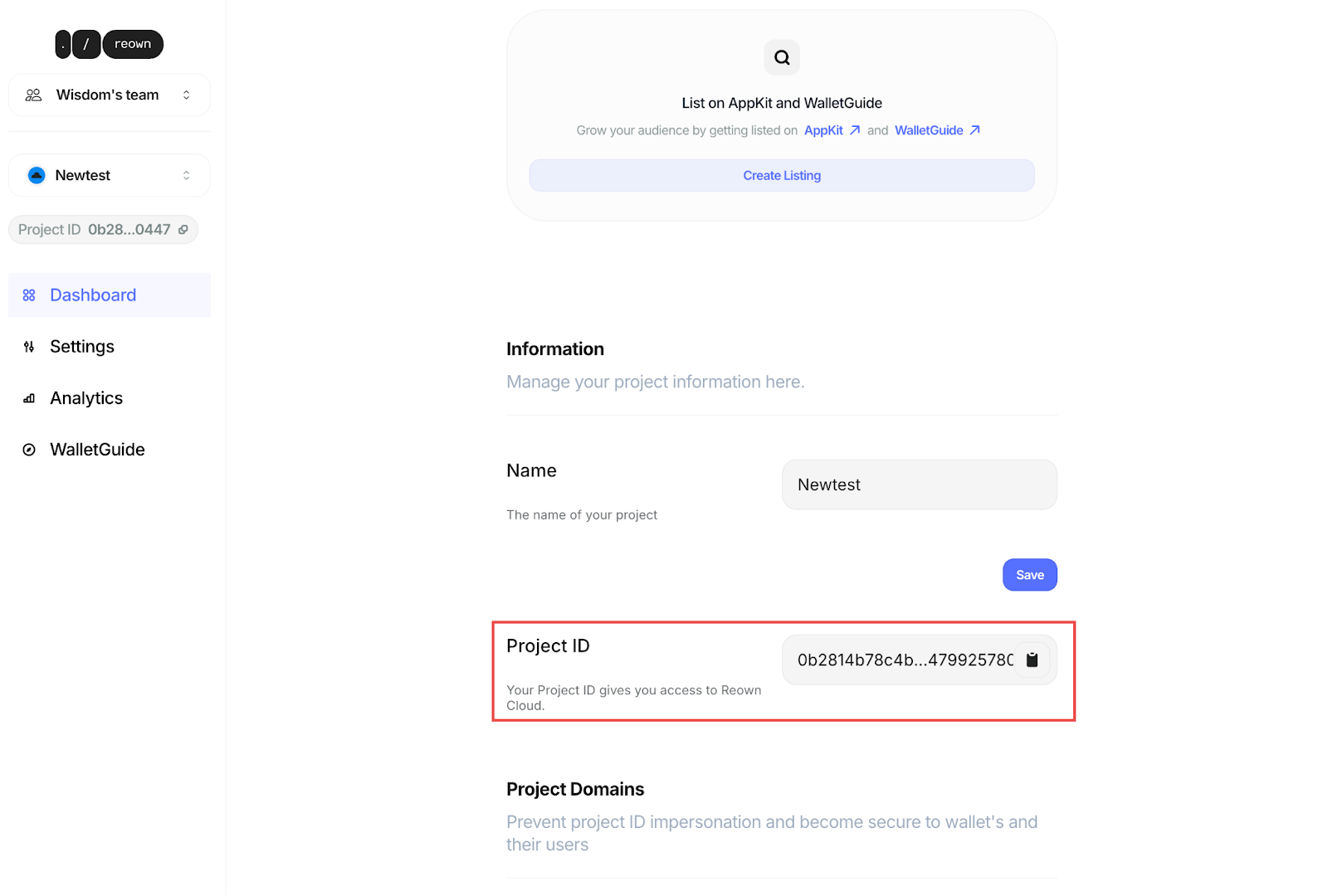 - Visit https://cloud.reown.com/ and create a WalletConnect project if you don’t already have one.